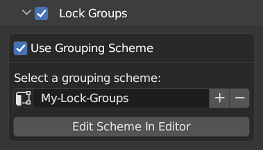 In order to define lock groups using a grouping scheme, create a new scheme for that purpose or select an already existing scheme. After the scheme is selected, press the Edit Scheme In Editor button - you will be automatically redirected to the Grouping Editor with the given scheme selected for editing.