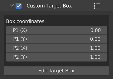 Keep in mind that in order for the box to be used, you have to keep the Custom Target Box functionality enabled - as soon as you disable the functionality, the default unit square will be used as the target UV area again (nonetheless the coordinates you configured for the custom box will be saved in the add-on UI so you can easily reuse them later).