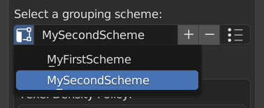 - set the name for a new scheme (if you chose that option) or select an existing scheme from the list of all schemes in the blend file,