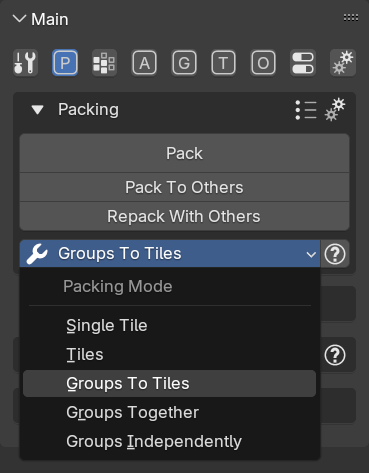 In order to use the Groups To Tiles packing mode select it from the Packing Mode selection menu: