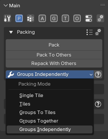 In order to use the Groups Independently packing mode select it from the Packing Mode selection menu: