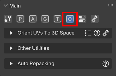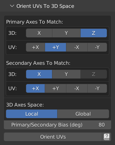 The UI of the Orient UVs to the 3D space functionality looks as follows: