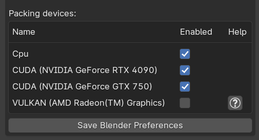 Starting from version 3.3.0, UVPackmaster supports packing on GPU using also the Vulkan API (alongside with Cuda). Note that Cuda is still the default API to use on all NVidia GPUs - UVPackmaster doesn’t list NVidia GPUs as supporting Vulkan. Vulkan can be used to accelerate packing on AMD Radeon and Apple M Silicon GPUs.